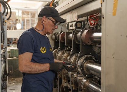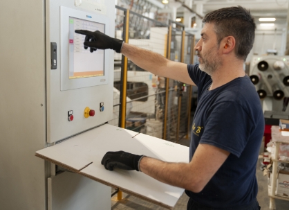 Parallelamente alle operazioni logistiche, il personale addetto alla trasformazione prepara le macchine, configurando i parametri necessari per l’avvio della produzione. Questa sincronizzazione tra logistica e preparazione permette un avvio rapido ed efficiente del processo produttivo.